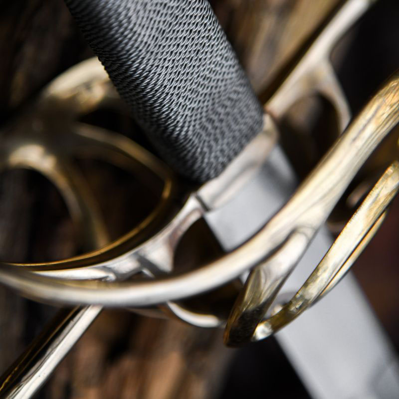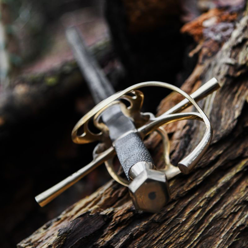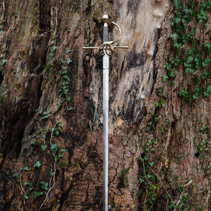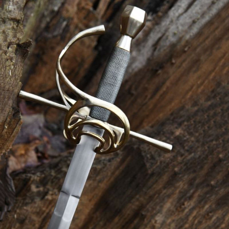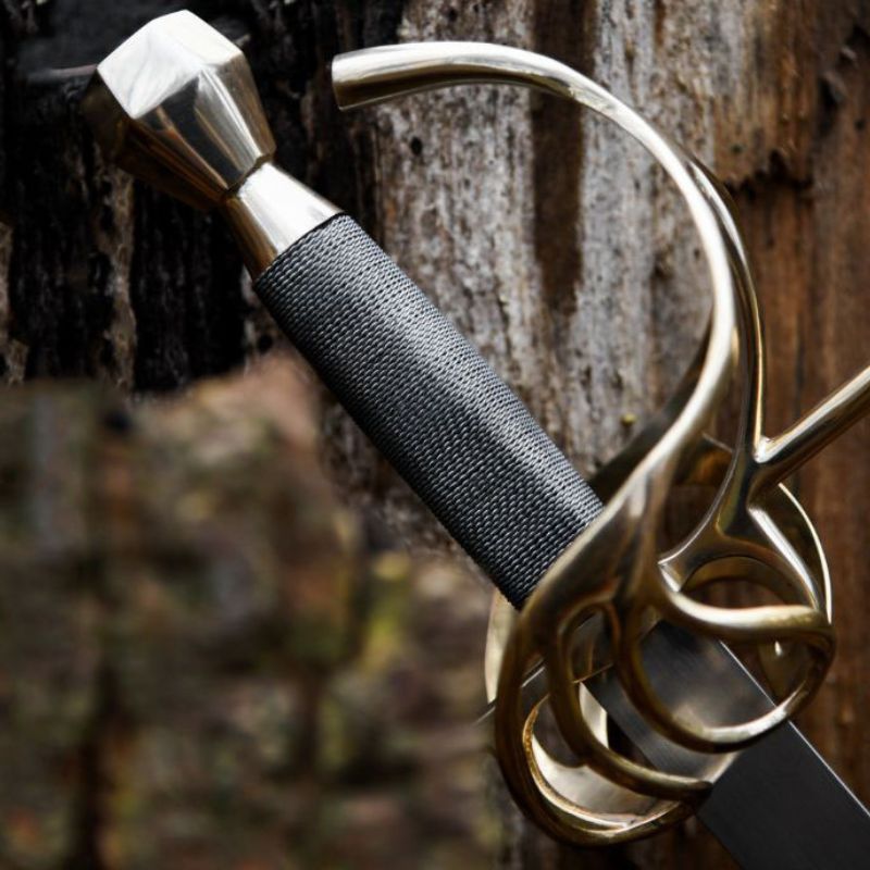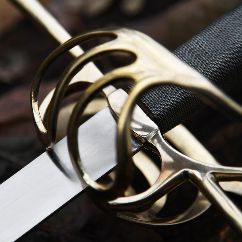 Una replica ispirata a modelli del XVII secolo. La lama è realizzata in acciaio al carbonio. Tutta la parte dell’impugnatura è stata prodotta in ottone. La lama è leggermente affilata.