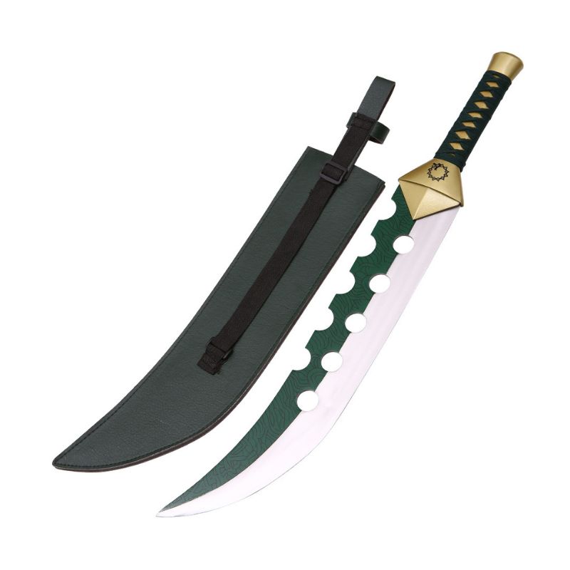Questa replica della spada di Meliodas è un oggetto da collezione imponente e magnifico. La lama della spada è realizzata con cura in acciaio inossidabile di alta qualità, che le conferisce un’eccezionale resistenza e durata. I disegni sulla lama sono straordinariamente belli. Esponetela con orgoglio con o senza fodero!