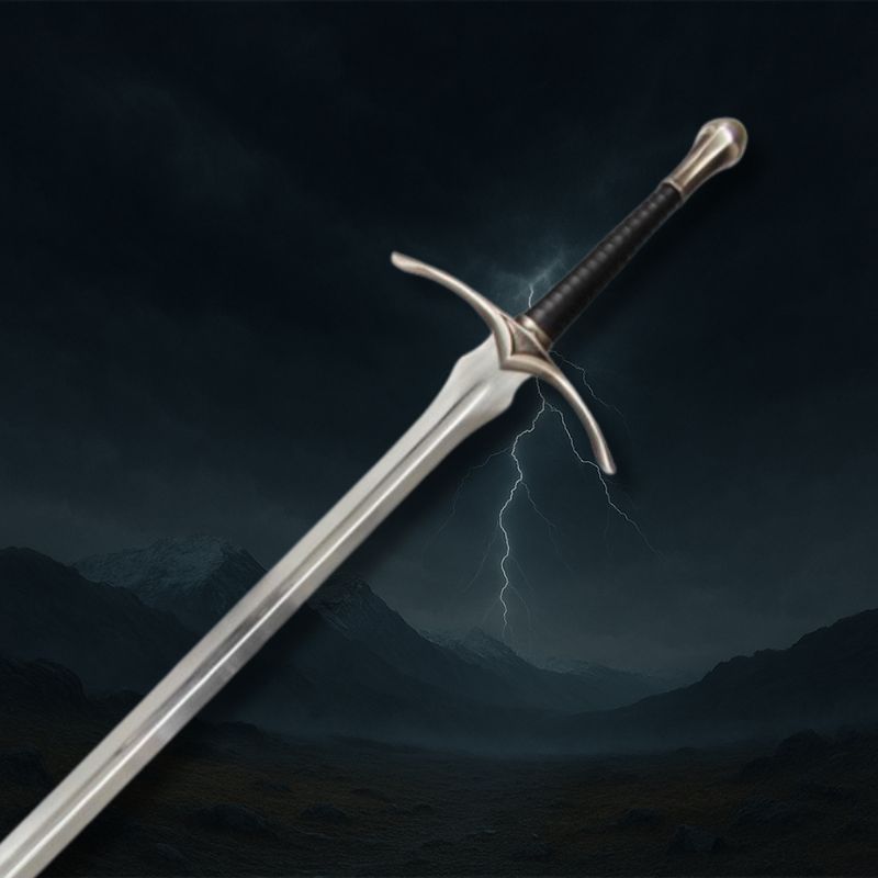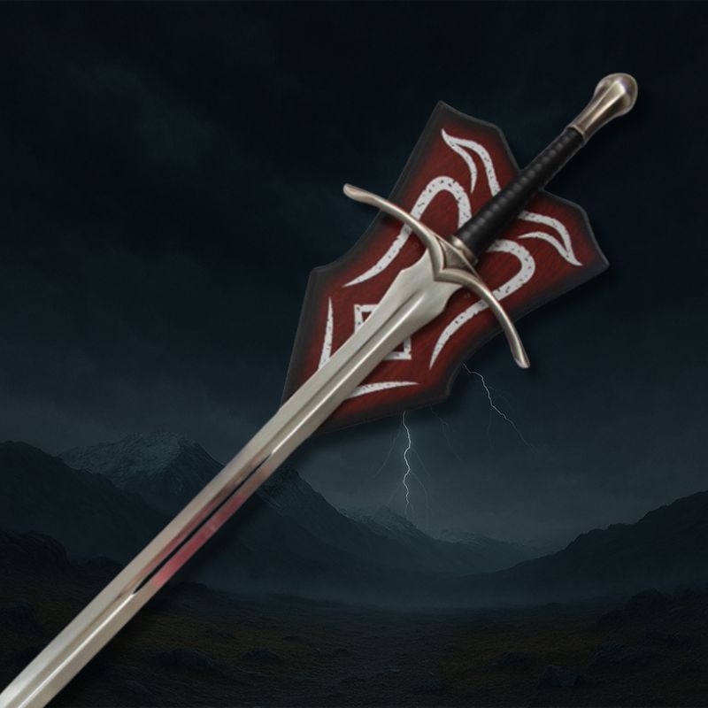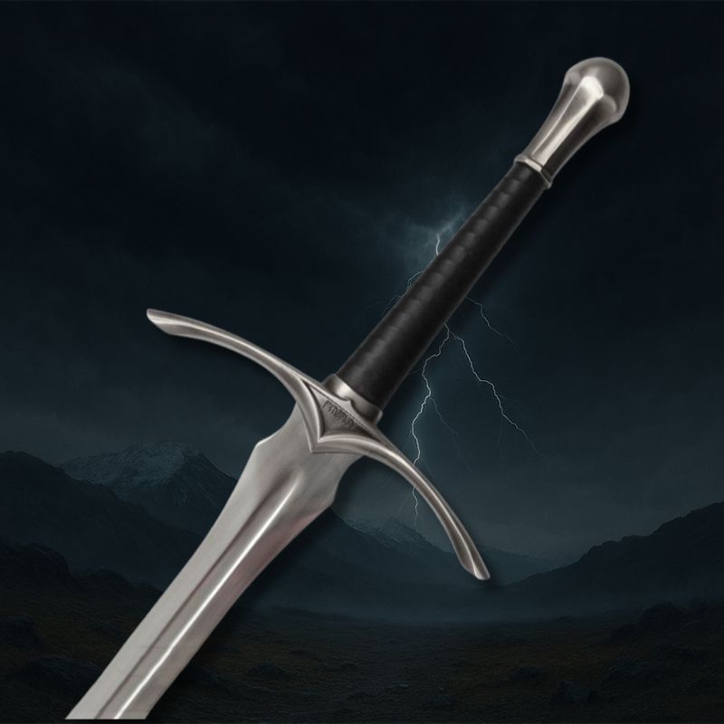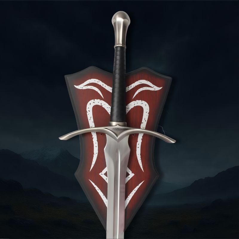 Questa spada incarna la forza e la saggezza degli antichi regni. La sua lunga lama in acciaio inox, dotata di una gola centrale, presenta una finitura accurata e una solidità notevole. Il pomolo e la guardia in acciaio anticato aggiungono un tocco di autenticità, esaltato dalla presenza di rune elfiche incise nel cuore della guardia. L’impugnatura, rivestita in similpelle, garantisce una presa comoda ed elegante.