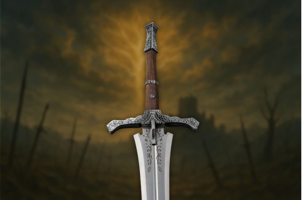 La Claymore del Cavaliere di Elden Ring è una magnifica replica, un pezzo immancabile per fan e collezionisti.